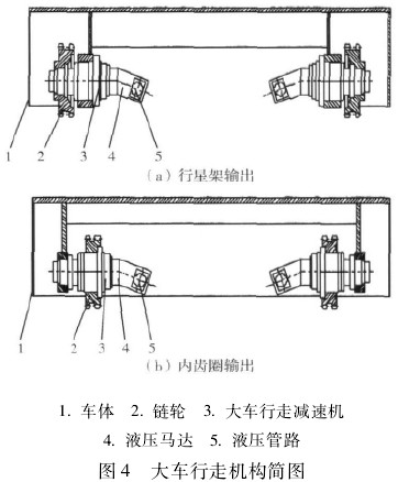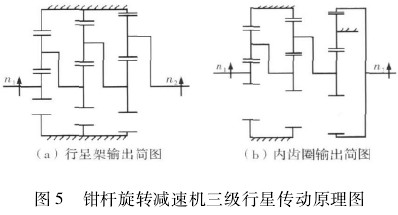 大車行走減速機也存在頻繁起動和停止,頻繁正反向運動等工況,其三級 NGW 型行星齒輪減速機結(jié)構(gòu)原理如圖 5 所示。