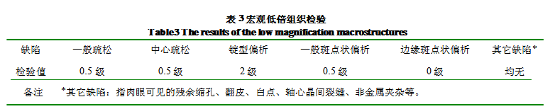 截取軸中非斷口的橫截面進(jìn)行宏觀低倍組織檢驗(yàn),結(jié)果如表3: