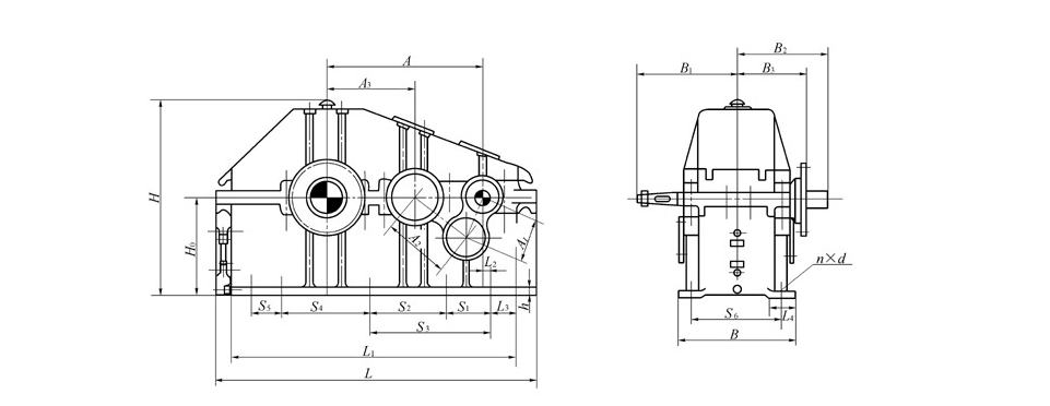 | 型號 | 高速軸 | S | 低速軸 | T | T1 | d1 | D2 | d7 | d8 | h2 |